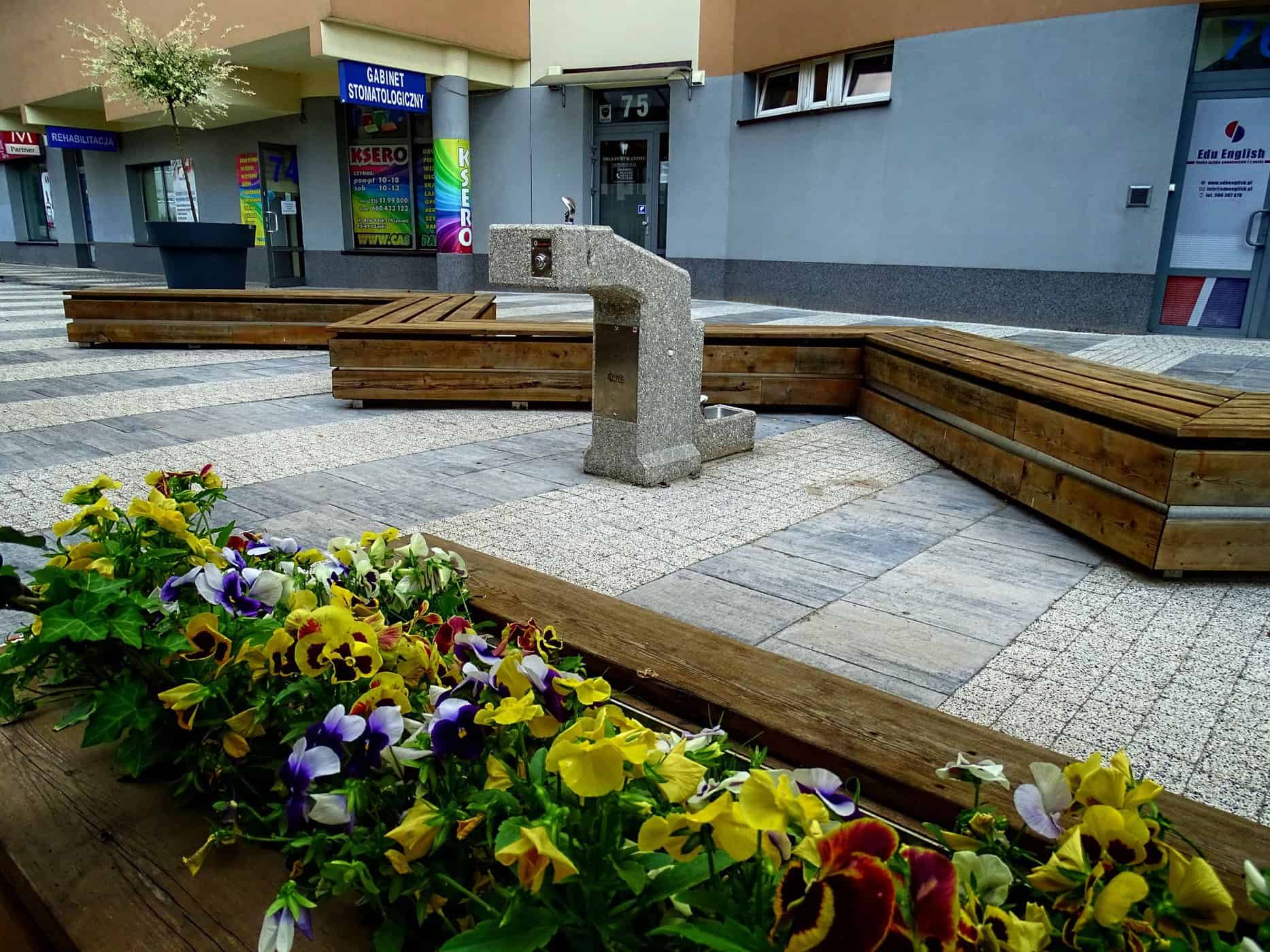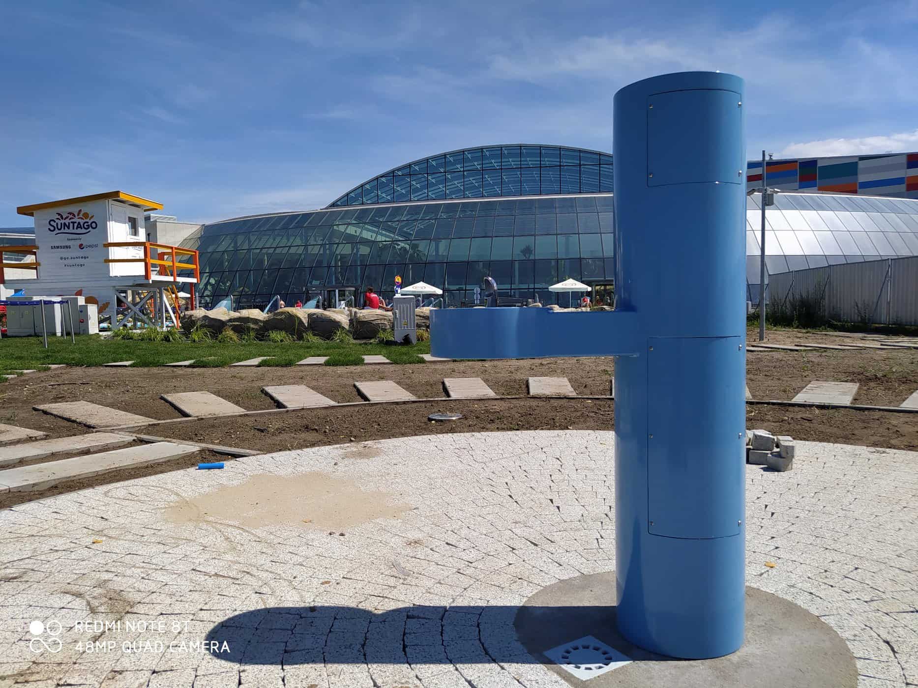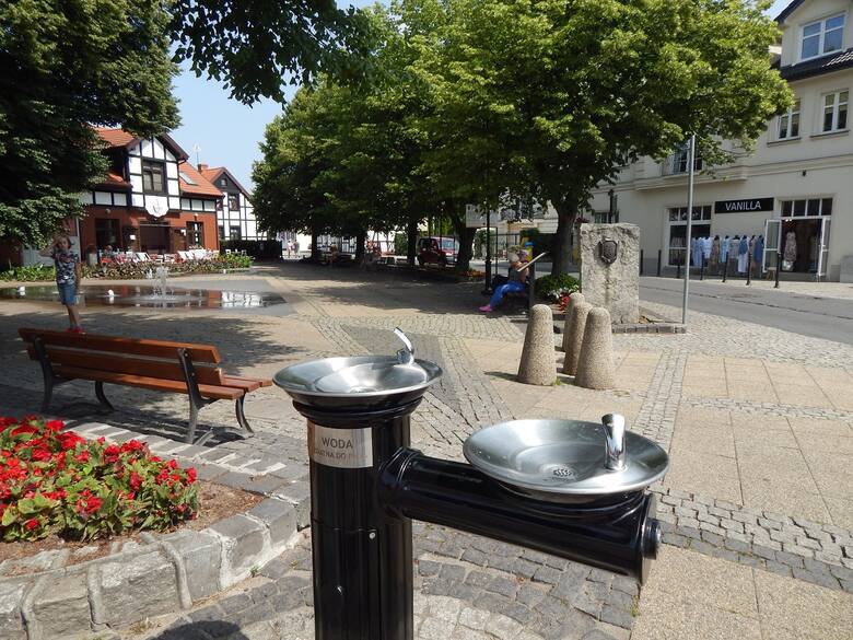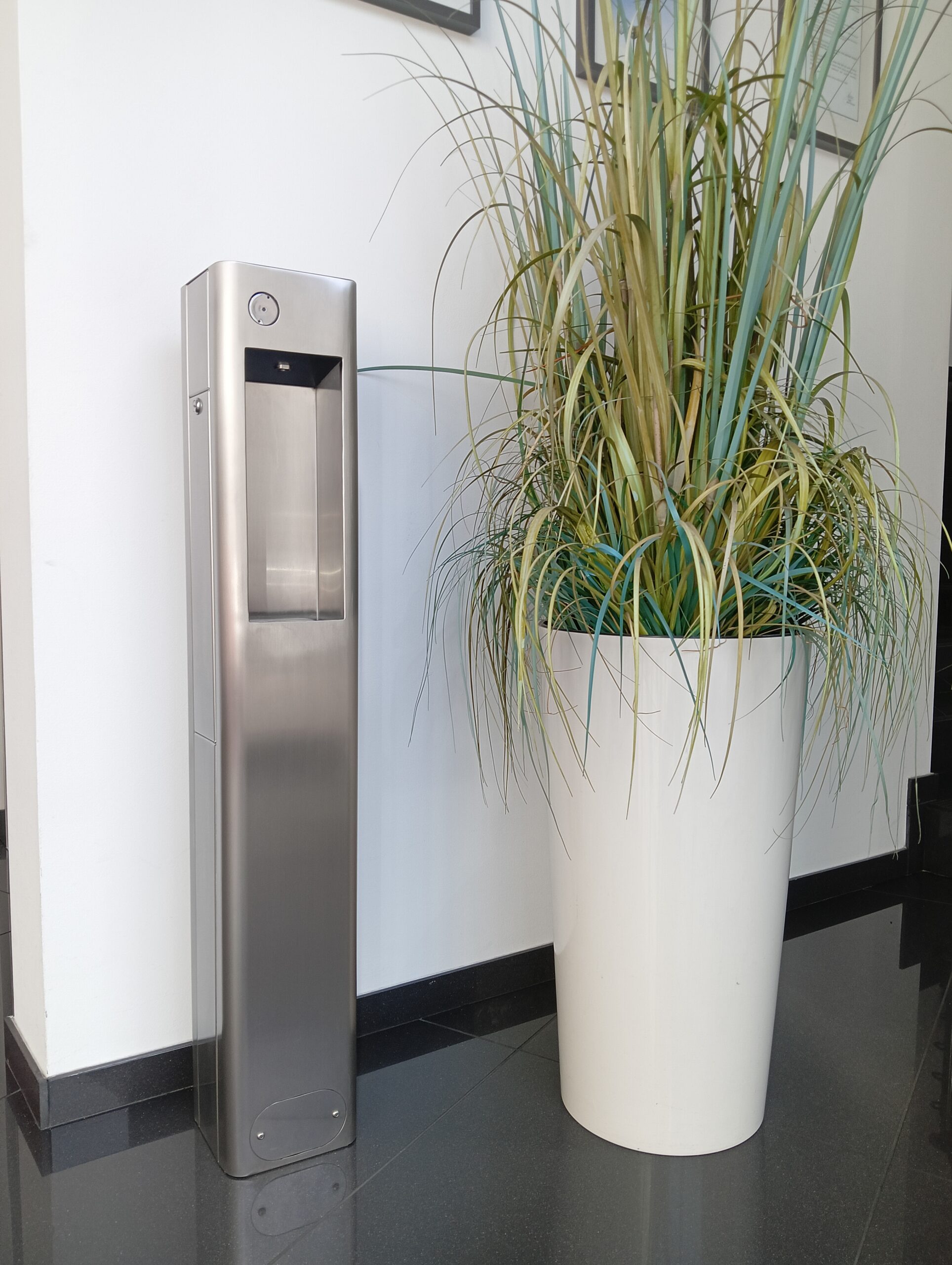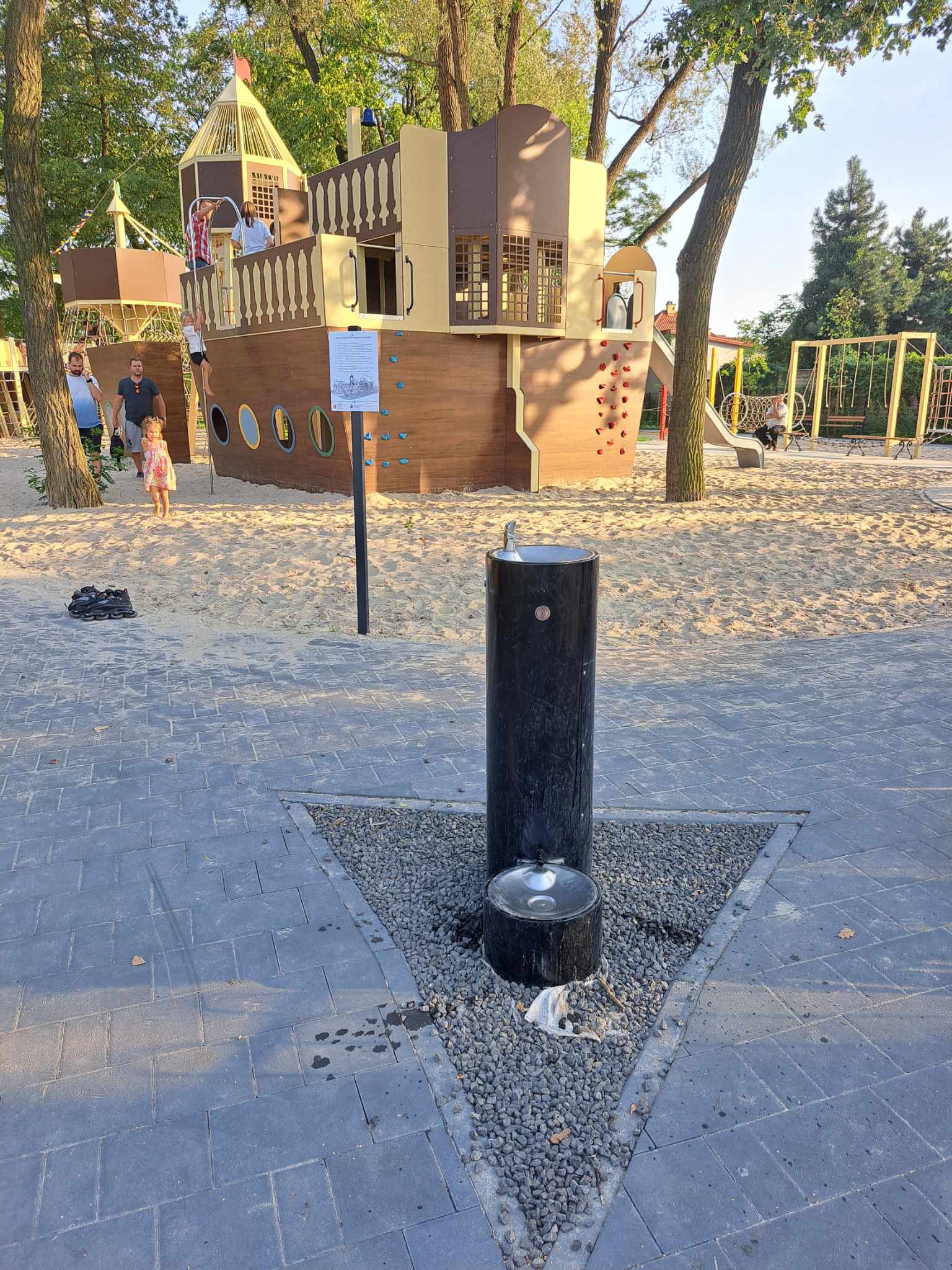 Zdrój wody pitnej postumentowy, ze stali nierdzewnej, odporny na korozję oraz warunki atmosferyczne, wandaloodporny.