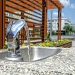 Postumentowy zdrój wody kranowej z misą boczną oraz poidełka dla zwierząt, przeznaczony do zastosowań zewnętrznych, takich jak: parki, deptaki i ogrody miejskie. Montowany w celu zapewnienia stałego dostępu do wody pitnej wszystkim spragnionym.